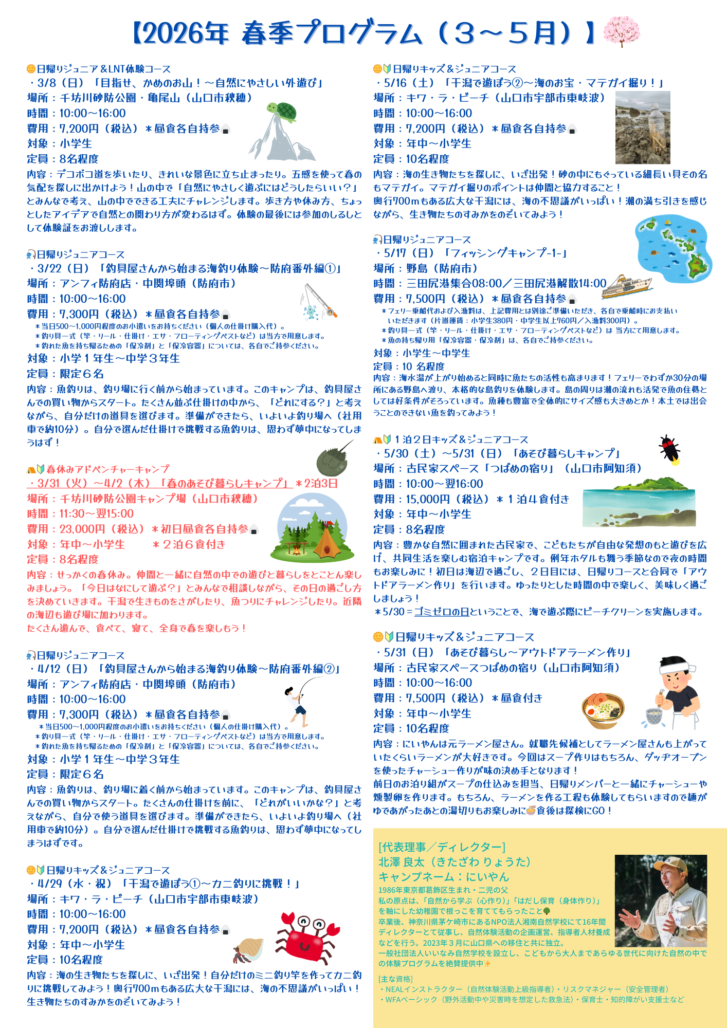 ・その他スタッフとして、ディレクター(運営責任者)および参加者人数によってはサポートスタッフも同行し全体をサポートします。